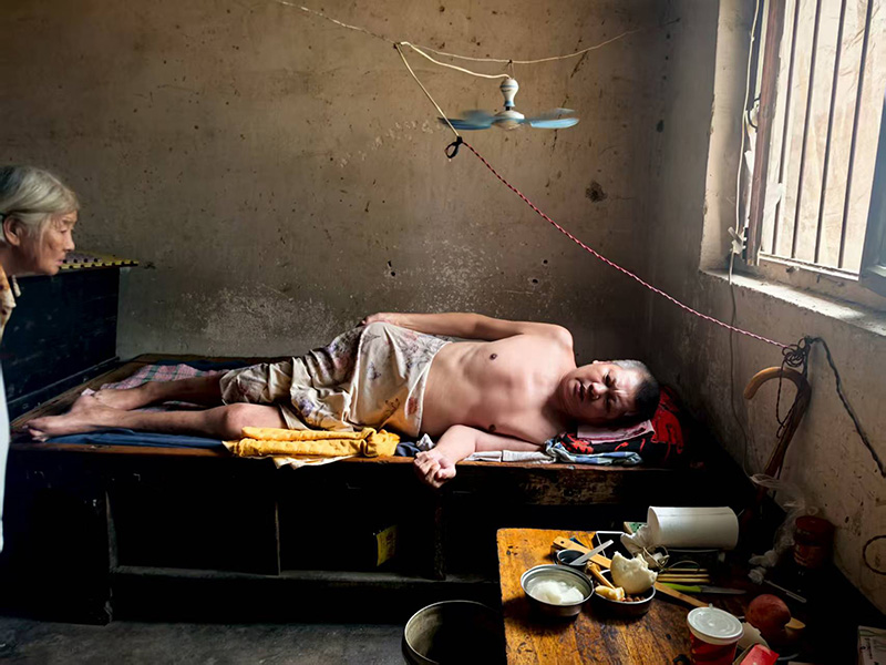 她的母親80歲,獨自給他喂飯時,粥水要一點點順進喉嚨,稍快一點就嗆得臉紅;大小便不能自理,每一次都要麻煩他的日漸佝僂的母親,他眼里的愧疚比身體的疼更沉。可即便這樣,他母親依舊沒有放棄他,為了他母親他依舊堅強的活著。