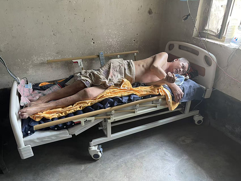 樂康醫(yī)療集團懷揣著沉甸甸的社會責任,用行動詮釋“慈善”與“愛心”的重量:為防山鎮(zhèn)這位癱瘓三年的困難群眾春生同志,送上了一張電動護理床。
